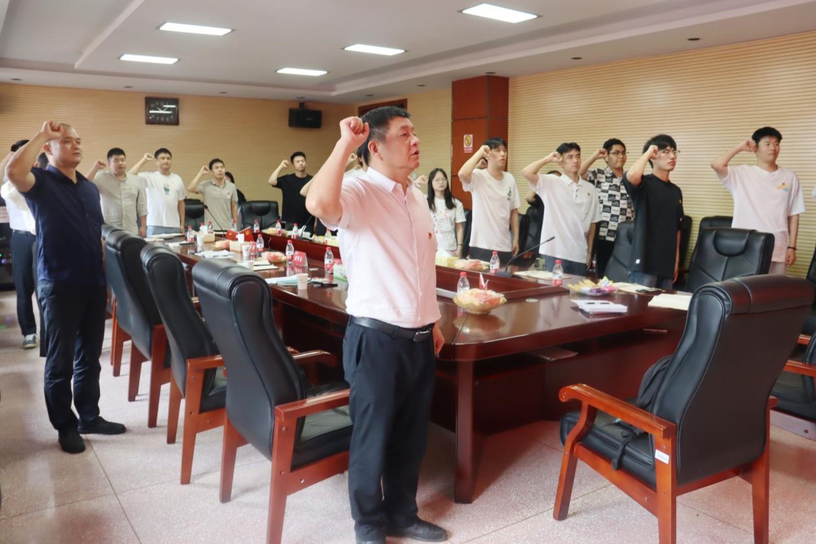 会议伊始,全体与会人员起立,由金可元书记领誓,重温入党誓词,铿锵有力的誓言在会议室回荡,彰显了党员们的坚定信念和使命担当。
