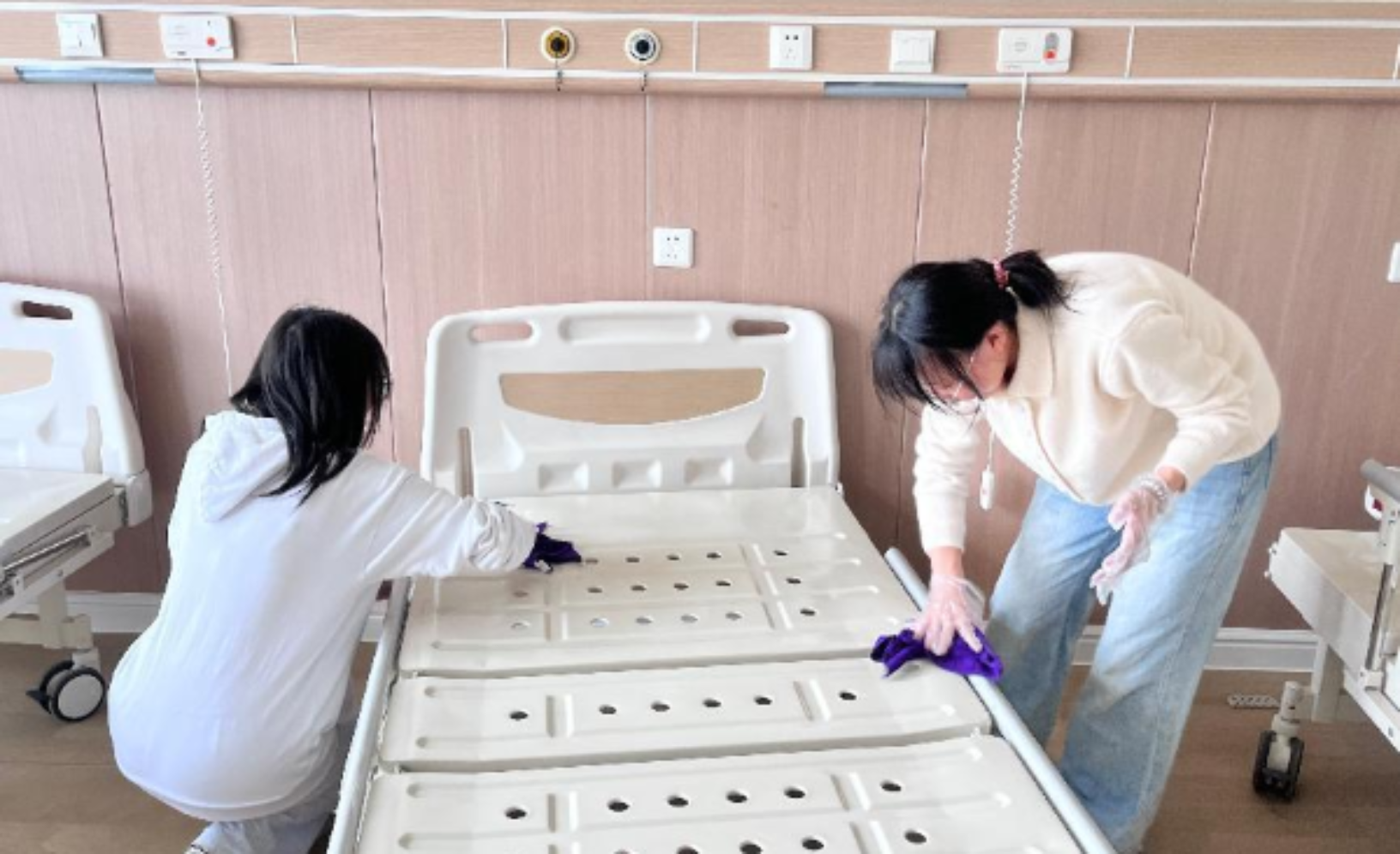 活动内容丰富多样,首先是对协和颐养院新启用的楼层进行全面清洁。支部成员们分工明确,一部分人负责地面清洁,用扫帚将地板打扫得光洁如新;另一部分人则负责门窗的清洁工作,他们手持抹布和清洁剂,细心擦拭窗户和门上的污渍,确保阳光能够毫无阻碍地洒进房间,为老人们带来明亮与温暖。